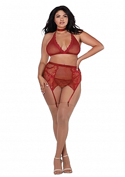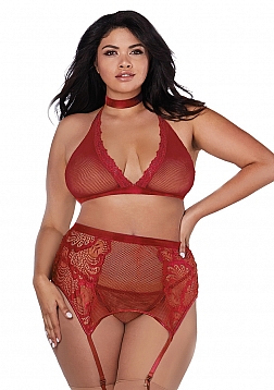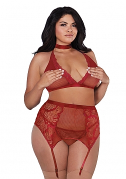 Fishnet and Lace 4 Piece Set - Plus Size