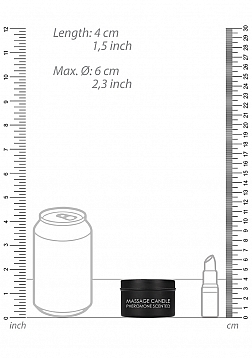 | Dimensions package | 4,50 x 6,70 x 6,70 cm | | Weight package | 130 gram | | Product dimensions | 4,5 x 6,5 x 6,5 cm | | Product weight | 100 gram | | Specifications | Tin and contents may be hot. This massage candle burns at a low temperature (46 ℃), so the oil cannot burn the skin. The liquid contains oils - this can damage condoms and toys (latex). Never leave a lit candle unattended! Extinguish the candle before dripping the oil from the candle. If irritation occurs, discontinue use. Keep out of reach of children and pets.