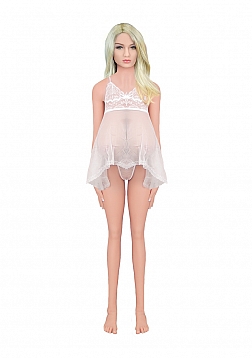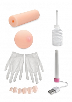Included: - USB body warming element - 1 Chest ball - Lingerie set - Extra replacement press-on nails - Hairbrush - Body lotion / lubricant - Toy cleaner - Renewing powder - Cleansing irrigator - 1 Extra accessory vagina - Instruction manual