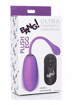 Feel the sublime power of BANG Toy’s Plush Vibrating Egg! The 28 different vibration patterns, combined with the silky smooth feel of its silicone material, gives you plenty of options to play with when the mood strikes. This egg is also waterproof, allowing for use in the shower or the hot tub. The fun never stops with this USB rechargeable vibrator, as it also comes with a wireless remote for easy solo use or exciting partner play! Play with confidence - this egg is made with body safe, non porous, phthalate free silicone. Use only with water-based lubricant, silicone material is incompatible with silicone based lubes.