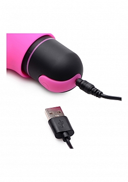 | Dimensions package | 27 x 13,30 x 6 cm | | Weight package | 370 gram | | Product dimensions | 23,6 x 7,6 x 4,3 cm | | Product weight | 300 gram | | Insertable length | 14,7 cm | | Rechargeable | Yes | | Rechargeable time | 120 min | | Recharged battery lifetime | 60 min | | Waterproof | Yes | | Splashproof | Yes | | Phthalate free | Yes | | Materials | Silicone, ABS plastic |
