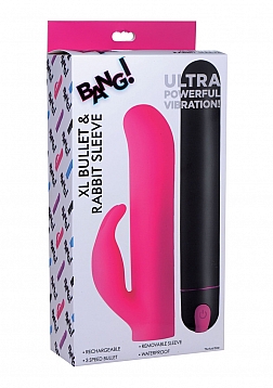 Do you love the idea of BANG Toy’s XL Bullet, but want a little bit more versatility with it? Look no further and this silky smooth sleeve set! It includes the XL bullet, as well as a silicone sleeve that can be slipped down over the bullet for added insertional texture. The curved tip and rabbit stimulator are sure to drive you wild! Play with confidence - this sleeve is made with body safe, non porous, phthalate free silicone. Use only with water-based lubricant, silicone material is incompatible with silicone based lubes.