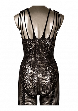 Watch as your lover melts at the sight of you in the Scandal® Strappy Lace Bodysuit, a lace full body lingerie piece created with a sexy lace pattern and strappy neckline to sensually accentuate your curves. The soft stretchy lace and bold crotch-less design are perfect for hours of passion pleasure play. Surrender yourself to your partner’s every whim and indulge in unrestricted pleasure with the sinfully crotchless design. Give into primal desire, inspire new passions and indulge in scandalous pleasure with this seductive full-body ensemble.