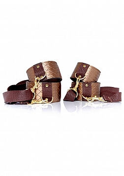 Quilted ankle and wrist cuffs with gold accents. Adjustable in size.