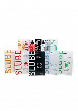Slip, slide and slather your partner in the silky smooth sensations of Slube! Immerse yourself into an explosion of fragrance and colour with the Cocktail Editions, indulge in a pool of luxurious lubricant with Pure, or take a wild ride with the hardcore Black Leather version!