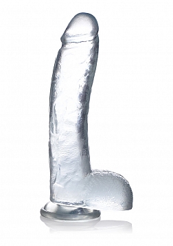 This crystalline cock is thick, clear, and hand crafted for peak pleasure. Perfectly sculpted with lifelike details and a meaty ballsack, this huge 10.5 incher is great for veteran size queens or kings. Designed to be low maintenance and easy to clean so you can play hassle free and focus on your pleasure.