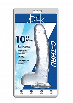 Firm yet pliable, this clear dong is a dream to squeeze and flexible enough to stay comfortable during rougher sessions. The strong suction cup base lets you play hand free with any smooth and flat surface –secure this transparent shaft and get down to business without it slipping or falling over. The suction cup base also makes this thick dick compatible with most strap on harnesses so you can peg or be pegged with a thick, dependable dong whenever the mood strikes.