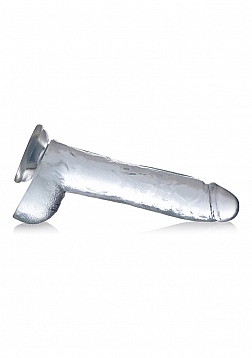 This crystalline cock is thick, clear, and hand crafted for peak pleasure. Perfectly sculpted with lifelike details and a meaty ballsack, this huge 10.5 incher is great for veteran size queens or kings. Designed to be low maintenance and easy to clean so you can play hassle free and focus on your pleasure.