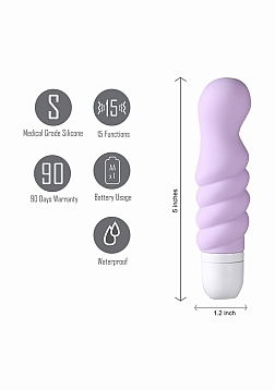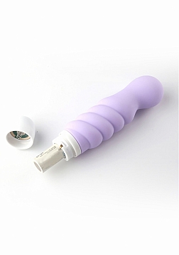 Maia Toys Chloe Silicone G-Spot Lavender Vibrator. Silicone twisty, curved, non-phallic shaft. Swirled pattern