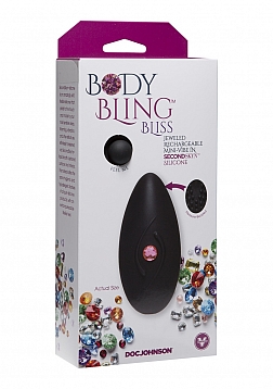 Add some bling to your bedroom with the Body Bling Bliss in SECONDSKYN™, an amazingly soft, flexible silicone that warms to the touch and molds to your most sensitive areas. This jeweled mini vibrator is small but powerful, with a quiet motor and 8 unique functions. Enjoy the smooth surface on top, or flip it over to experience the stronger stimulation of the lightly textured underside. Bliss is easy to operate too-- just a press of its sparkling gem powers vibrations on and off, and selects your favorite mode. Bliss is completely wireless, and conveniently rechargeable via the included USB cable.