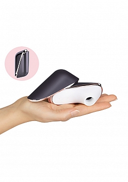 The Traveler, both chic and portable, features our proprietary Air-Pulse Technology, making you weak in the knees. Whisper-quiet and topped with a magnetic cap, this tender gem is great for "grab and go" moments and secret rendezvous.