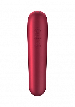 Discover dual stimulation with the Satisfyer Dual Love With the Dual Love air-pulse vibrator, you enjoy a sensual combination of stimulating pressure waves and powerful vibration that seductively pampers your clitoris or G-spot. Since you can use both sides of the vibrator, you have a choice: The support head made of body-friendly silicone stimulates your clitoris with proven air-pulse technology, while the insertable shaft stimulates you vaginally with powerful vibrations. The Dual Love also looks good: The ergonomic design is decorated with sophisticated details with a metal appearance.