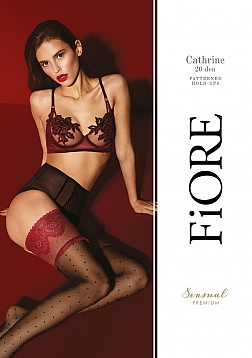 Sensuous patterned hold-ups with a sexy, red lace top, sheer leg and invisibly reinforced toe portion for elegance. Double covered yarns in 3D technology increase durability and resilience, as well as guarantee soft and smooth texture - a ‘silky touch’ effect. This technology provides a feeling of comfort to your skin and increased elasticity for a perfect fit.