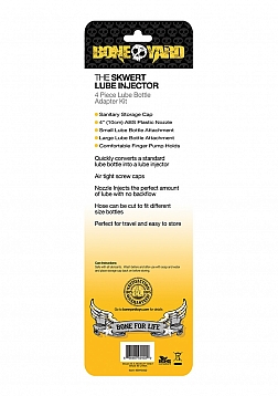This Skwert Lube Injector quickly converts most lube bottles into a lube injector. Forget those messy syringes, the Skwert Lube Injector makes deep lubrication much easier. The 4” (10cm) interchangeable plastic injector comes with a small and large lube bottle cap. The injector has comfortable finger pump holds, that lets you inject the perfect amount of lubricant with no backflow. The injector also comes with a sanitary storage/travel cap. The hose attachment can be cut to fit multiple size bottles.