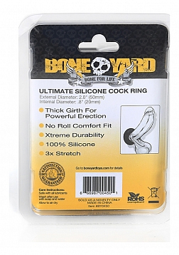The Boneyard Ultimate Silicone Cock Ring is the must-have man toy for every man’s arsenal. The premium donut shaped ring is designed with superior materials and production thus increasing both comfort and lifespan. The powerful and iconic Boneyard-branded design has a sleek soft touch silicone finish and features a superior and durable stretch.