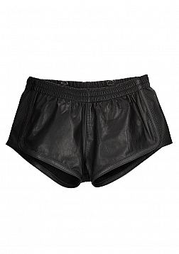 When you want to make a fetish fashion statement, these beautifully designed, real leather shorts will certainly get you noticed, while accentuating all the right places. To make sure you stay cool there are ventilation holes on either side and the elasticated waist makes for a comfortable and perfect fit. Make these your fetish go-to leather party shorts. The shorts comes in size S/M and L/XL Colour Code: Black - BDSM | Red - Fisting | Blue -Anal