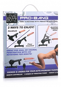 This Pro Bang Sex Machine provides you two exciting ways to play! This machine boasts a powerful thrusting action in a lightweight and portable form and is capable of being mounted to flat, smooth floors for a banging good time solo or with your lover. The lightweight design allows you to handle the Pro-Bang with ease, letting you control and direct its power into your partner!