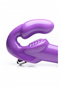 The powerful bullet vibe easily slips into the cavity of this strap on dong to give both the wearer and their partner 3 speeds and 4 patterns intense vibation. Flip through each function with the on-board power button and find which pattern suits you play style!