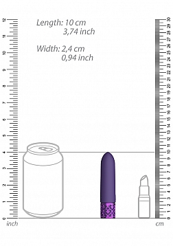 | Dimensions package | 10 x 3,40 x 16,50 cm | | Weight package | 176 gram | | Product dimensions | 10 x 3,4 x 3,4 cm | | Product weight | 43 gram | | Product diameter | 2,4 cm | | Quantity motors | 1 | | Rotations vibration tip | 10000 RPM | | Speed modes | 10 | | Multi speed | Yes | | Noise level | 45 dB | | Rechargeable | Yes | | Rechargeable time | 120 min | | Recharged battery lifetime | 60 min | | Waterproof | Yes | | Splashproof | Yes | | Phthalate free | Yes | | Materials | Silicone |