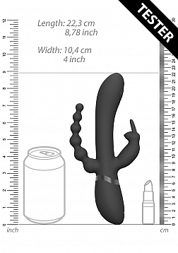VIVE-RINI Rechargeable Pulse-Wave Triple Motor Silicone Rabbit - Black..