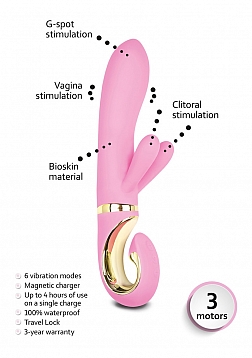 Grabbit can boast of 3 powerful motors, one of which is in the trunk at the tip, to stimulate the G-spot, and two motors are located in small ears, to stimulate the clitoris. Grabbit's operating time is no less than 4 hours on a charge. Women will be able to take advantage of its 3 motors and 6 new modes of vibration. With Grabbit, it will be exciting to play in the bath because it is 100% waterproof and resistant to water. Simultaneous stimulation of 3 sensitive areas: G-spots, clitoris and vaginal orifice. Ergonomic design | Three powerful and quiet motor | Six new modes of vibration with variable intensity from light shocks to intense vibrations | Intuitive control | Made of high quality hypoallergenic medical silicone | No smell | 100% waterproof | Up to 4 hours of operation on a battery charge | Magnetic charger. Please note that the initial charging time is 2 hours | Size: 7 x 1.3 inches (18 x 3.5 cm) |3-year warranty | Power lock during transportation (press ON and hold for 2 seconds).