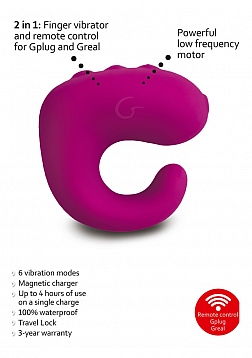 GringXL is an exciting combination of finger vibrator and remote control for your other Gvibe pleasure products all in one. This compact powerhouse is brilliant to use on its own as a cock ring or as a finger-vibe for your clitoris, nipples, perineum, and other sensitive zones. Plus, G-RingXL doubles as a remote control for various other Gvibe products including all sizes of Gplugs and the ultra-realistic Greal.