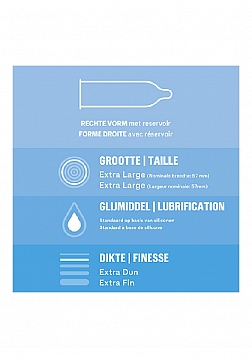 Durex Nude Extra Large XL 10 Condoms are transparent condoms made of natural rubber latex designed to maximise sensation while providing a high level of safety and protection. With an average nominal width of 57mm and ultra thin, these condoms are extra lubricated, silicone-based. The manufacturing process of Durex condoms allows them to have a pleasant smell. Straight shape with reservoir.