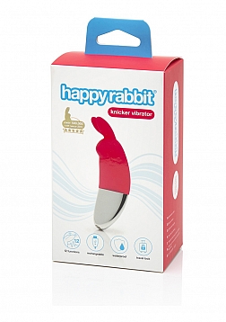 Key features: - Knicker vibrator with clitoris-targeting rabbit ears for daring couple’s or solo play - 12 vibration modes for exciting play and varied sensations - Sleek, slender design is discreet and lightweight - Waterproof for fun in the tub and easy cleaning - Travel lock means your happy rabbit® won't suddenly buzz into action when you least expect it