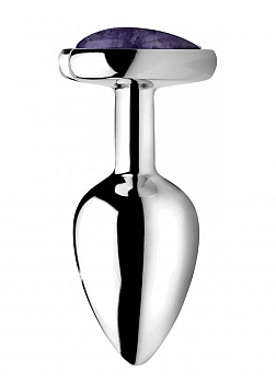 Genuine Heart-Shaped Amethyst Gem: Provide a calming, soothing energy to your butt; the heart-shaped Amethyst gemstone balances your mood, and helps clear negative thoughts while you play Comfortably Weighted: Add a downward pull to your hole for additional stimulation and pleasure thanks to the weighty nature of these metallic butt plugs Nickel Free Aluminum Alloy: The aluminum alloy material provides a deliciously hard and smooth mass for your ass to squeeze; compatible with most lubes Great For Temperature Play: Warm or chill this gemstone butt plug in a bowl of water to add another layer of sensation while you play; perfect for veteran butt plug users looking for a new way to play