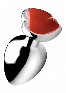 Energize your backdoor with this Red Jasper Heart! This metallic butt plug features an energetic Red Jasper gem to stir up passion and your supplement your inner strength. Stimulate your creativity, courage, and sexual energy - perfect for beginners and experts alike!