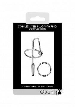 Stainless Steel Penis Plug with Glans Ring - 0.3" / 8 mm