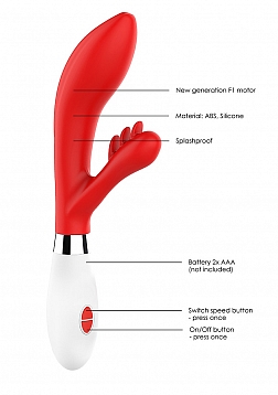 Agave offers a delicious extra: 4 tantalasing extensions on the clitoral stimulator. This rabbit-style vibrator will take you on a magnificent trip to orgasm heaven! Offering 10 different speeds (at 5200rpm!), this vibrator will help you achieve unbelievable pleasure. With little to no sounds (<50DB) this beautiful toy can be safely used in private. Made from smooth, phthalate-free, medical-grade silicone and ABS the Agave stands 23,1 cm (9,1") tall, has an insertable length of 13,9 cm (5,5") with a diameter of 3,6 cm (1,4"). This beautiful toy is battery operated. Just put 2 AAA batteries and enjoy a undisturbed pleasurous playtime!