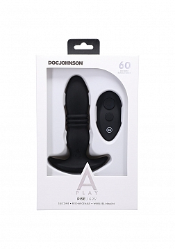 The A-Play RISE is a premium quality vibrating and thrusting anal plug, conveniently controlled directly on the product or via the included wireless remote. A-Play is Doc Johnson's high-end line of performance anal plugs, created with a variety of sizes and special features to promote anal pleasure and exploration for users of every experience level. Each product in the A-Play collection is USB-rechargeable, water-resistant, and includes a charging cable and fabric storage bag.