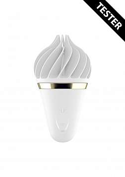 Pleasure yourself with a completely new sensation. Rotating soft silicone ribs arouse the clitoris with delicate yet firm intensity. Use this tender treat with your favorite lubricant and settle into a stimulating journey of ecstasy.
