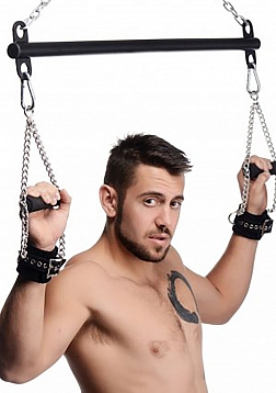 Key Features: Heavy Duty Steel Design: Built to stand up to the writhes and pulls of your sub! Keep their hands up and have your way with their body - tickle, tease, and punish their flesh for a fun night of teasing and impact play. Attachment Points: The two attachment points makes it easy to attach your choice of restraints and handles! Tie them up in something rough for an edgier scene - combine with blindfolds, ankle spreaders, and gags for a genuine BDSM experience. Versatile For Unlimited Fun: Designed for versatility and openness so you can explore every kink and desire your naughty imagination can come up with! Holds Up To 350 pounds: The included chain and bar supports most body shapes and sizes, with a weight limit of 350 lbs.