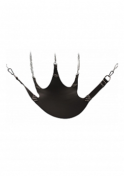 This sling is a model that will fit perfectly in your playroom or SM Dungeon. It is made of leather with 5 steel hanging points. Dimensions: 113 x 122 cm - Leather thickness 3mm