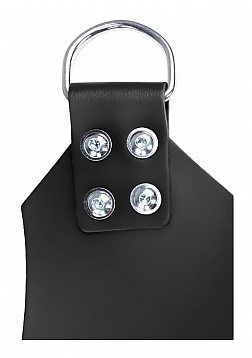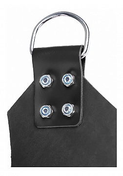 Black 4 point leather sling is designed with a rectangular very comfortable. The rounded cut on the front facilitates movements.. The dimensions are: Length of 100cm / Width at the front 62cm . With the 4 metal ring attachment points Genuine cowhide leather (thickness 3mm). Vegetable tanned and Made in Europe