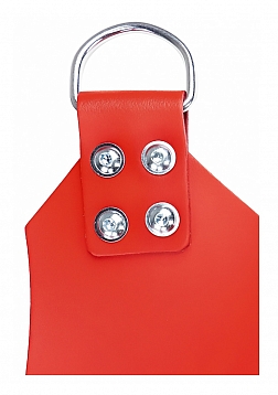 Red 4 point leather sling is designed with a rectangular very comfortable. The rounded cut on the front facilitates movements.. The dimensions are: Length of 100cm / Width at the front 62cm . With the 4 metal ring attachment points Genuine cowhide leather (thickness 3mm). Vegetable tanned and Made in Europe