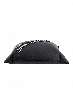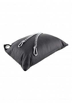 This black leather cushion is an accessory from the brand Mr Sling. It is ideal to bring more comfort during the moment of sex. It is fixed to the sling thanks to the 2 metal chains of 20cm + the carabiners Genuine leather. Vegetable tanning. Made in Europe