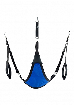 This Blue fabric sling is designed with a Triangle shape and Camouflage fabric. It fits with 3 or 4 attachment points. It comes with the accessories: the 4 hangers with the metal carabiners / the padded foot supports (11cm wide) / the black triangle cushion (24 x 20cm) Material: polyester made in Europe