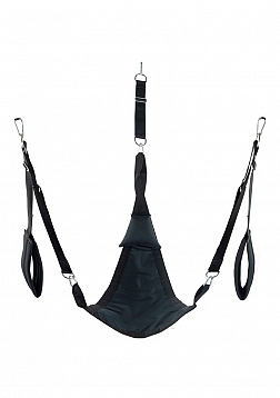 This Black fabric sling is designed with a Triangle shape and Camouflage fabric. It fits with 3 or 4 attachment points. It comes with the accessories: the 4 hangers with the metal carabiners / the padded foot supports (11cm wide) / the black triangle cushion (24 x 20cm) Material: polyester made in Europe
