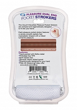 | EAN CODE: |  | 853545008549 |  Cloud 9 Dual Ended Pleasure Pussy and Ass Double Ended Beaded Stroker with bonus drying pouch. Color Tan. The Cloud 9 Novelties Dual Ended Pleasure Strokers are compact and ergonomically designed to fit into your hand. Each pleasure pocket stroker features a velvety smooth realistic feel masturbator with a ribbed tunnel for your pleasure.
