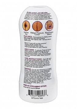 Cloud 9 Pleasure Anal Pocket Stroker Water Activated Light. No lube needed. Just add water. Pleasure Pocket Stroker is compact and ergonomically designed to fit into your hand. Each pleasure pocket stroker features a water activated velvety smooth realistic feel masturbator with a ribbed tunnel for your pleasure.
