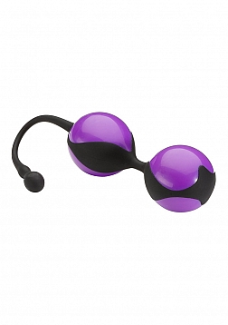 Cloud 9 Novelties Kegel Balls Black/Purple 35mm. Cloud 9 Premium Kegel Balls feature a silicone sleeve outside and with weighed steel balls inside for pleasure. Includes one dual ball holder with silicone retrieval loop.