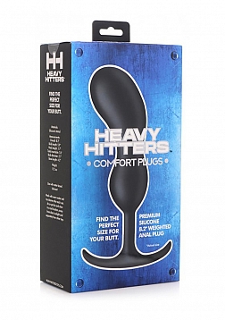 Take a Heavy Hit to your backdoor - this curved comfort plug is crafted to fill your ass and rub your prostate with its velvety exterior and heavy metal weightiness! This premium butt plug is ergonomically shaped to fill your booty with two bulbs, each featuring an internal metal weight to add a solid mass for you to squeeze and a delicious downward pull on your hole.