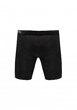 From the Black Nite collection by Male Power, this style includes: A long leg compression short featuring an enhancing support pouch, ultra-sleek branded waistband, and an above knee leg length.