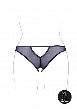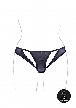 Milou - Elastic Mesh Brief with Open Crotch and Golden Details - Plus Size