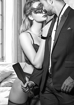 Have you fantasized about a sexy game of submission and dominance? Then this will be the perfect start for you! Make sure your love slave listens to your every instruction while you tease and seduce them. Handcuff them so you have free reign to do anything you want. If you are the submissive type and you want to be the one who's handcuffed, then this will be the perfect gift for your master! Comes with sexy lace mask, 12 inch leather paddle and furry metal cuffs.