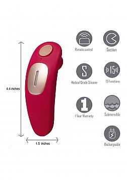 Remi combines powerful suction and vibration and adds a remote control to supercharge your public play. Remi attaches with our magnetic button that works with any type panty. The included remote control allows you to control Remi from up to 15' away. Remi can also be used normally and is great for solo or couple sensory play.