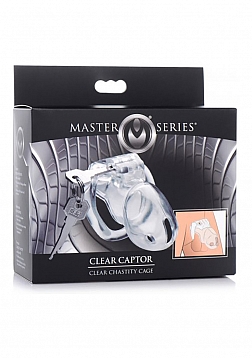 Confine your sub in this clear chastity prison! The Clear Captor locks your partners sexuality in clear view, preventing them from pleasuring themselves until you set them free. Made with forgiving materials for long term comfort, as well as a generous amount of ventilation holes and a pee through tip. The Clear Captor includes 4 ball rings of graduating size to fit all kinds of ball sacks! Whether your partner is high and tight or loose and large, choose from the smallest 1.7 inch ring to the largest 2.2 inches to lock their balls until further notice. The durable ABS plastic used for the Clear Captor is smooth and forgiving, perfect for all day chastity play. The cage itself features plenty of ventilation and a cum-thru tip for the necessaries, but remains rigid and firm for a sense of security and confidence for the wearer. The secure locking mechanism secures this cage without pesky locks getting in the way! The Clear Captor includes two keys, one for you and the other for your sub in case of emergencies.